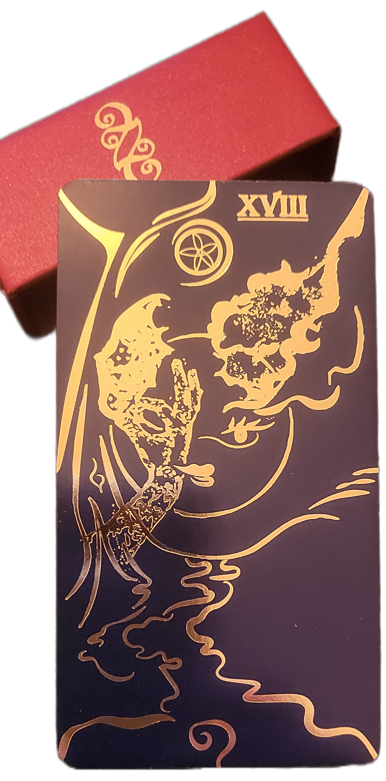 Ces 25 cartes sont les 22 arcanes majeurs (du tarot de Marseille). Les pas du Fou, forgés au contact de la neuroscience et de la philosophie bouddhiste, ont apporté avec cette version encore méconnue du cheminement ce que suppose habituellement l’utilisation du tarot. La lanterne du Fou (22 au verso des cartes) offre une vison plus large. Les 2 lampes, celle du 77 et du 22, se soutiennent dans un tirage de cartes. Chacune des cartes se relie, et particulièrement dans ce jeu , où, dans les 8 directions, elles vont se connecter à ce que l’on va pouvoir assimiler en tant qu’information, jumelées aux fonctions neuronales de l’esprit.